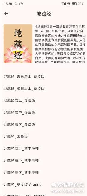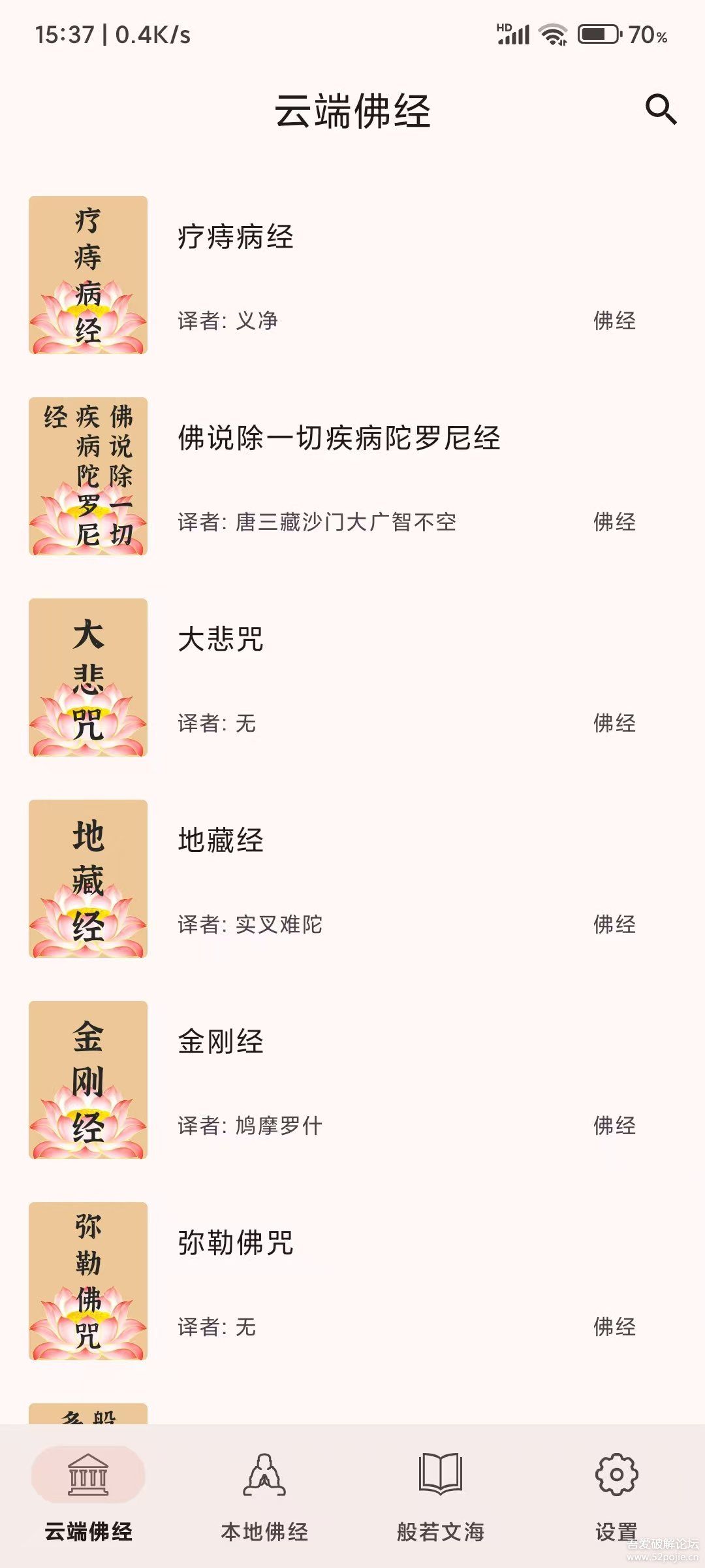 ★ 增加云端佛经库服务器,方便在云端服务器增加大量的佛经供下载播放。佛经可在线播放,也可以下载到本地播放。
